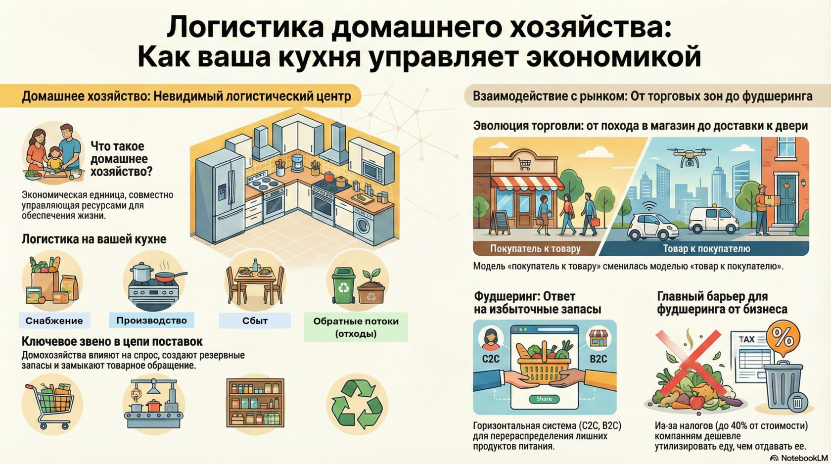 Логистика домашних хозяйств представляет собой важнейший завершающий элемент общей логистической цепи в сфере товарного обращения. Домашние хозяйства являются замыкающим звеном в цепи поставок, где принимаются окончательные решения о покупке и потреблении товаров.