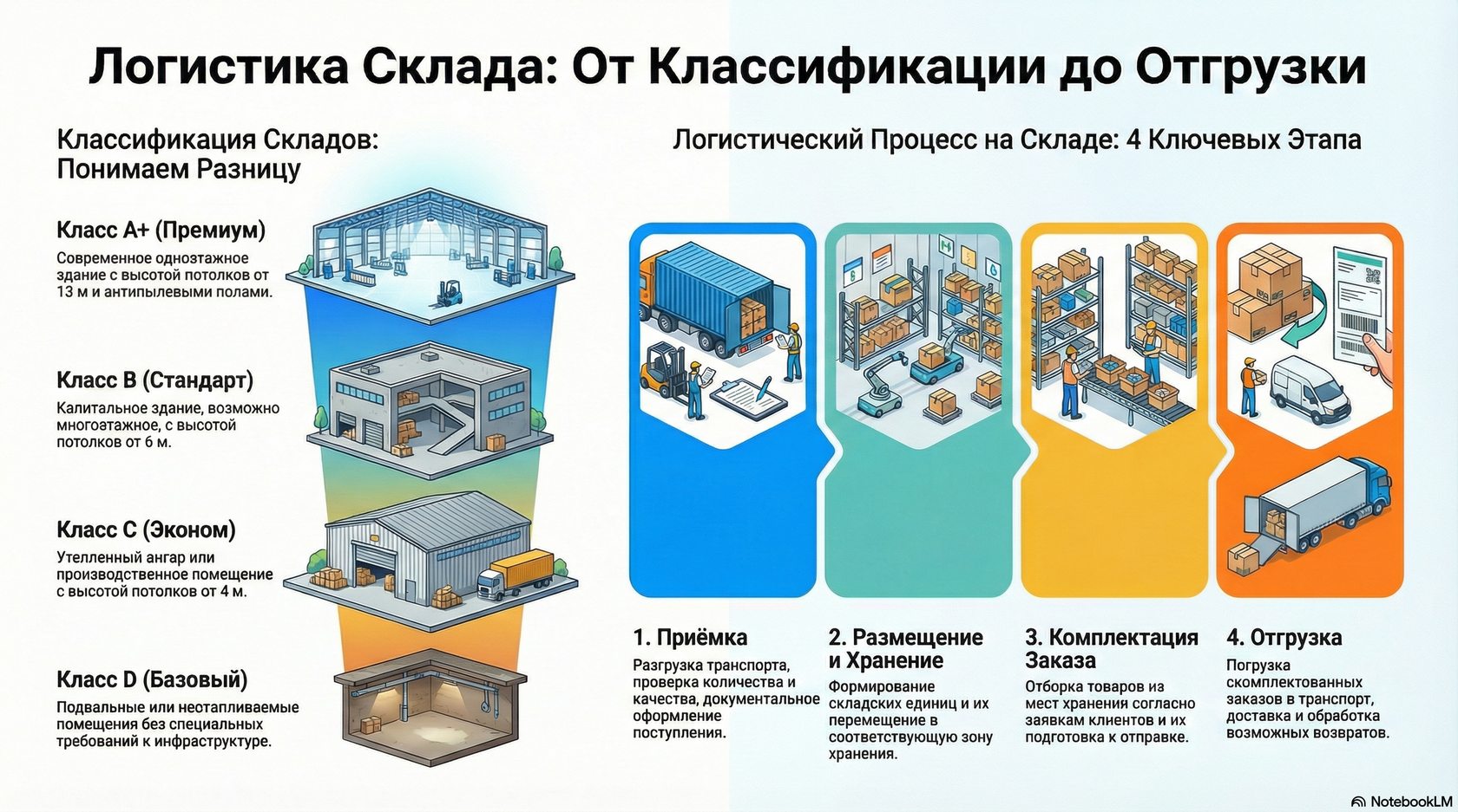 Логистика товарного склада представляет собой критически важный компонент управления цепями поставок в сфере товарного обращения. Классификация складов по классам от А+ до D отражает разнообразие операционных потребностей и экономических возможностей различных предприятий.